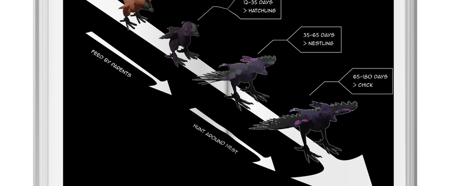 disasters such as sea-level rise, flooding, and earth fissure. The city sank underwater. All remaining buildings were occupied by large trees and plants. Such an environment created a perfect habitat for a new bird species, San Francisco Birds, the most dangerous creature in the air. San Francisco Birds has evolved from the eagle with a large wing span to 5 meters. The unique wing shape allowed them to fly through the building gaps even with the wings being folded. During the mating season, the female bird would dance and display their feathers and talons for courtship. Both male and female birds had a pair of strong talons for lifting and catching the prey. As an omnivorous tetrapod animal, San Francisco Birds consumed a large range of creatures, including baby owls, raccoons, rats, tunas and seagulls. Although San Francisco Bird was at the top of the avian food chain, baby birds were vulnerable. Raccoons and snakes were the common predators of the baby birds. Thus, San Francisco Birds would live in the nest until the juvenile age until they had obtained all hunting traits from the parents. At the age of nestling and chick, San Francsico Birds would be exposed to the outside of the nest to learn the basic hunting traits, such as catch the rats nesting in the buildings.
